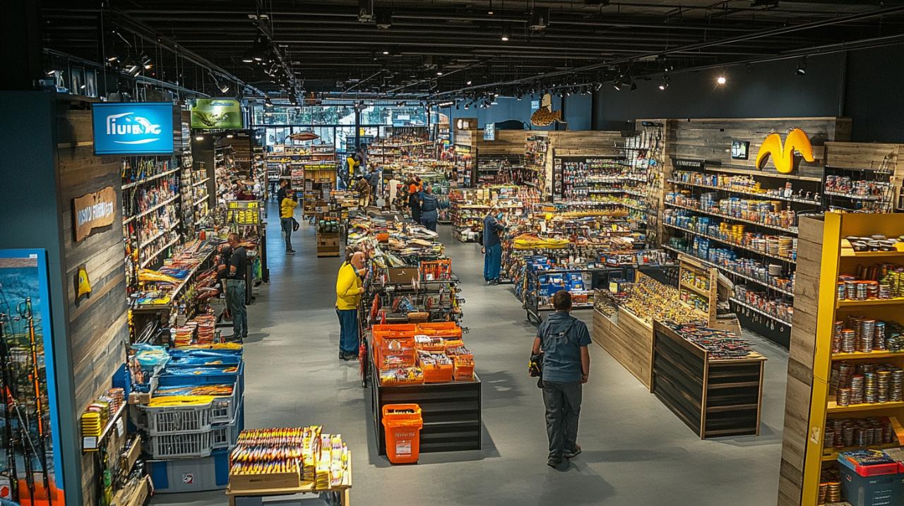 Au-delà des boutiques artisanales, de véritables temples du matériel de pêche ont vu le jour. Certains magasins déploient des surfaces de 2 000 mètres carrés entièrement dédiés aux équipements et accessoires de pêche. Ces espaces permettent d'organiser les rayons par discipline : pêche en eau douce, pêche à la carpe, pêche aux carnassiers ou encore pêche à la mouche. Cette organisation facilite le parcours d'achat et permet à chaque pêcheur de trouver rapidement ce dont il a besoin. Les marques les plus réputées comme Shimano, Daiwa, Sensas, Guideline, Fulling Mill ou Tenryu y sont largement représentées, garantissant un choix exhaustif pour tous les budgets.